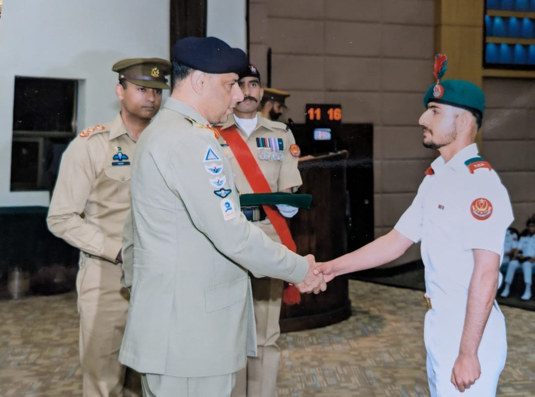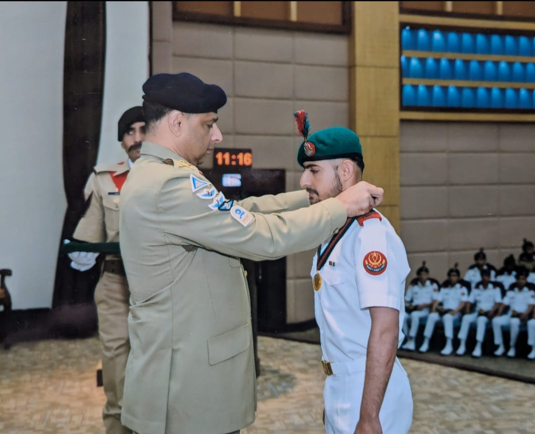 GC Kabir, after completing his education from Military College Sui in June 2023, joined the Pakistan Navy Cadet Term following his ISSB recommendation. Under the revised policy, cadets from all three services begin their initial training at PMA under the Joint Military Training (JMT-1)program. Amongst over 780 cadets representing the Pakistan Army, Navy, and Air Force, GC Kabir stood out and earned the top honour.