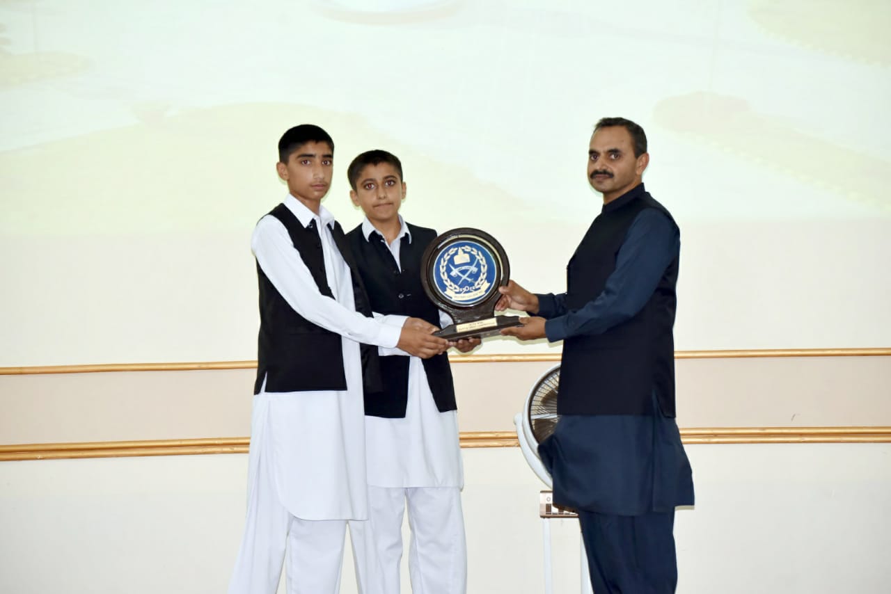 The Qiraat competition witnessed remarkable performances, with participants reciting verses of the Holy Quran with devotion and precision. The esteemed panel of judges, Lt Col Ali Aslam, Capt Umar (RMO) and Khatib Zia, judged the cadets for their impressive command over tajweed and heartfelt delivery.